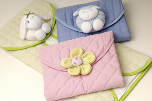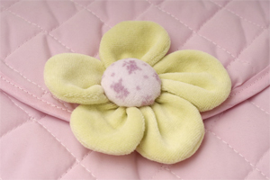 Práctico cambiador para bolso. En suaves colores y con un delicado aplique como cierre.
