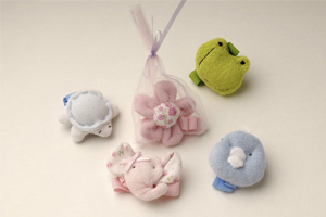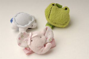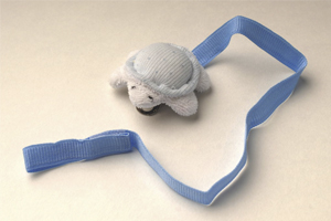 Gracioso motivo de portachupete con práctico gancho para la ropa o babero.